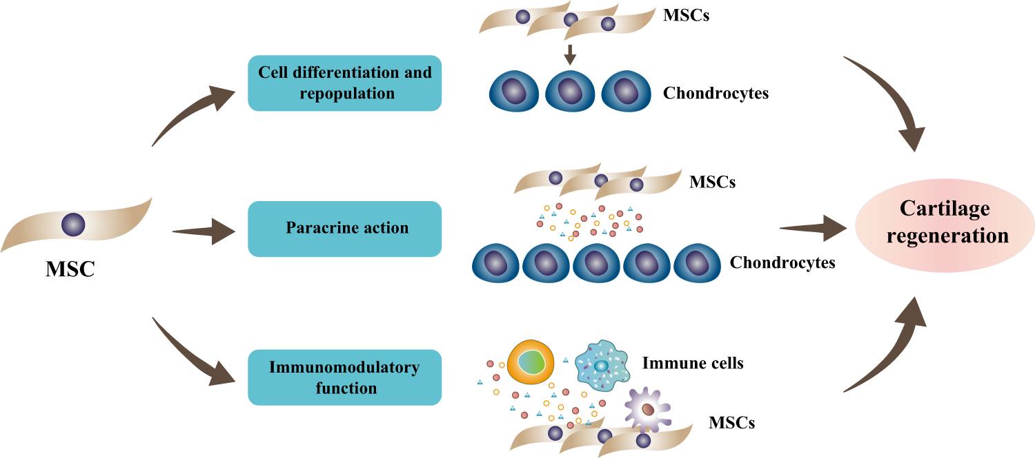 - MSCs can also release trophic factors to facilitate cartilage repair.